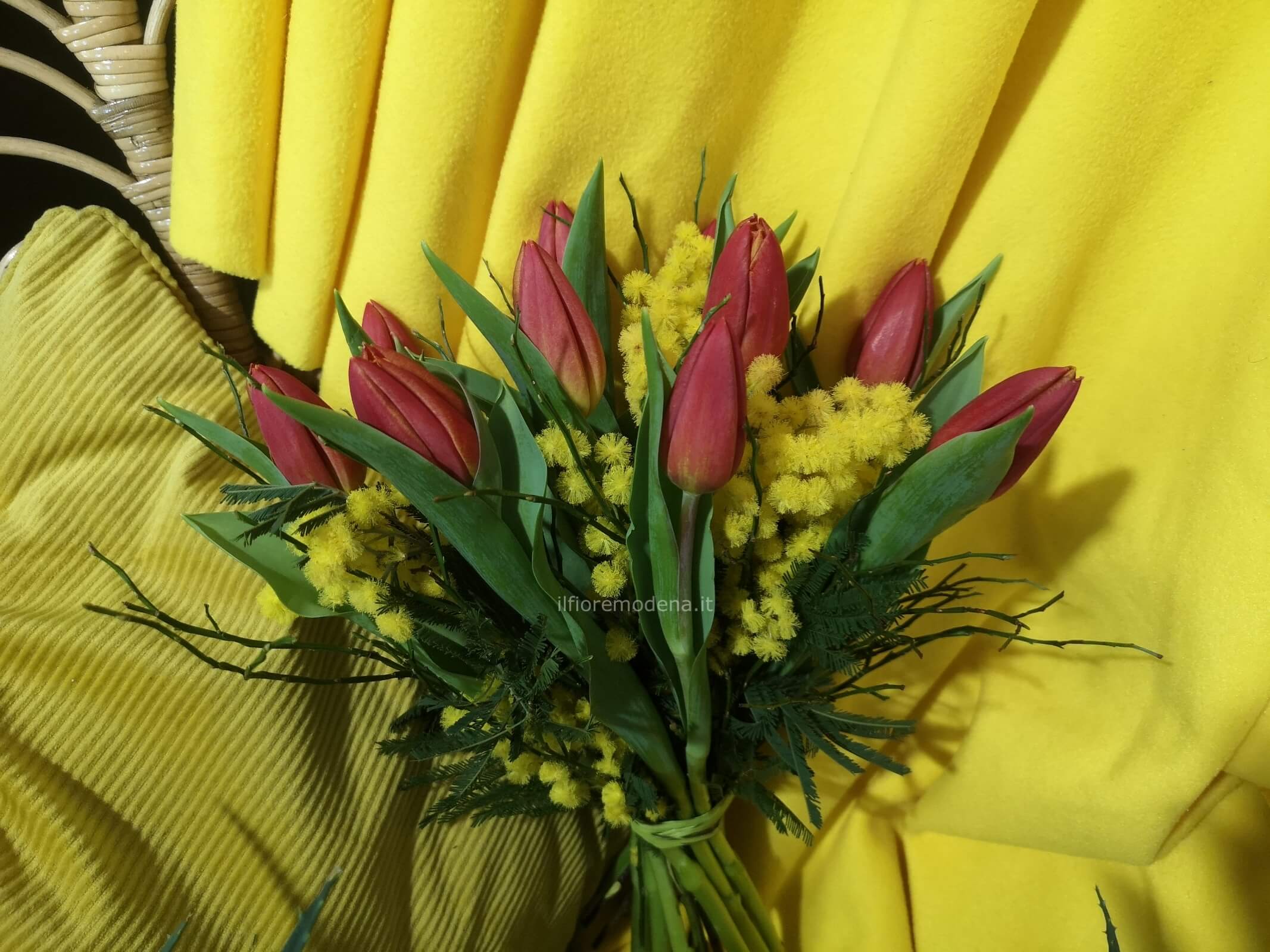 Bouquet tulipani e mimosa
